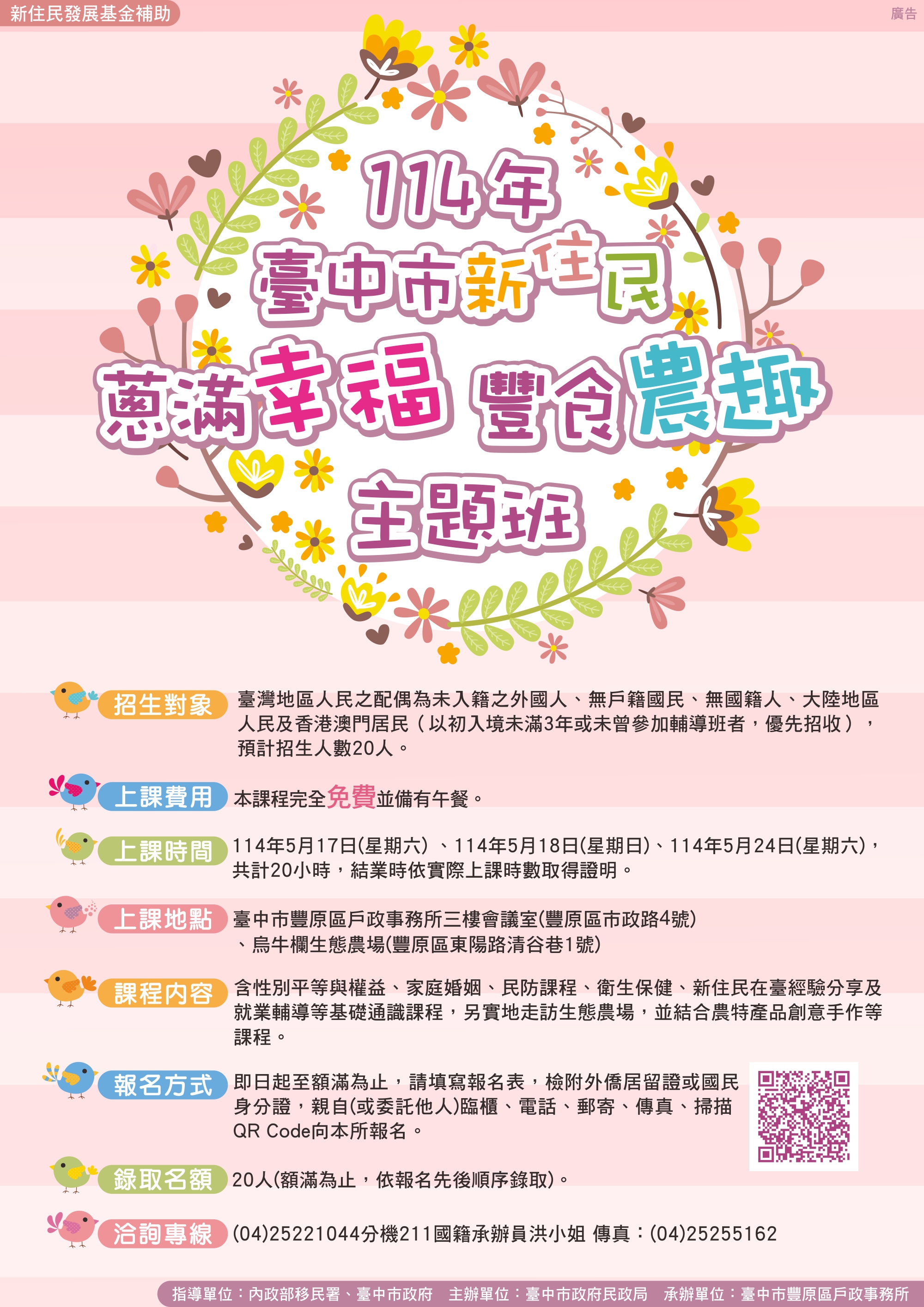 ★ 本所108-114年新住民適應輔導班資訊、招生海報