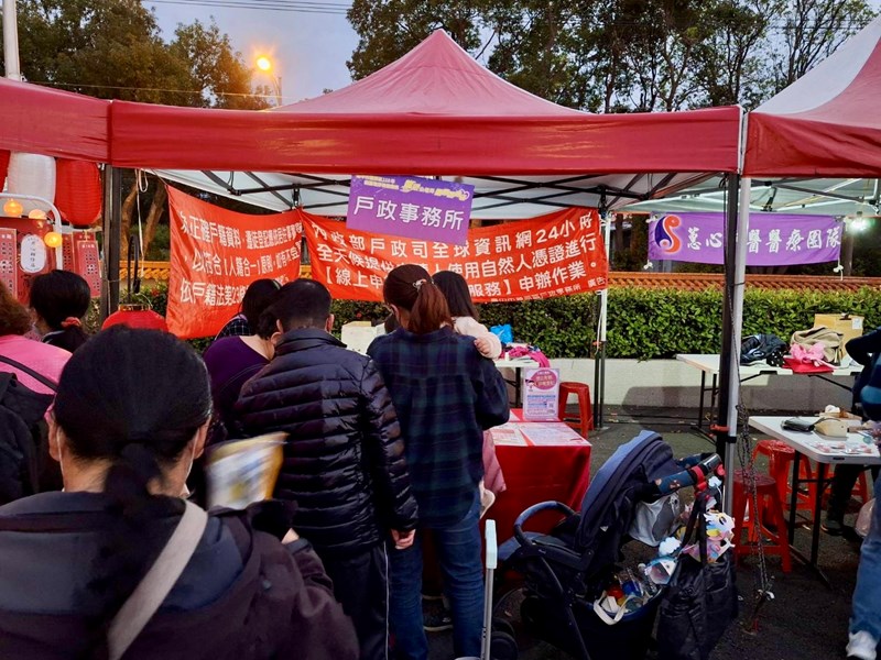 元宵節大家都去哪賞花燈呢?戶所同仁今天晚上跟著豐原媽祖來到公老坪,參加「龍耀公老坪 豐原媽賜福」活動,現場有藝文表演、產創市集、樂透摸彩及猜燈謎,許多市民都提著燈籠來參加,四處燈光熠熠很有元宵節氣氛。本所同仁設攤宣導戶政法令與性別平等,發送小獎與民同樂。