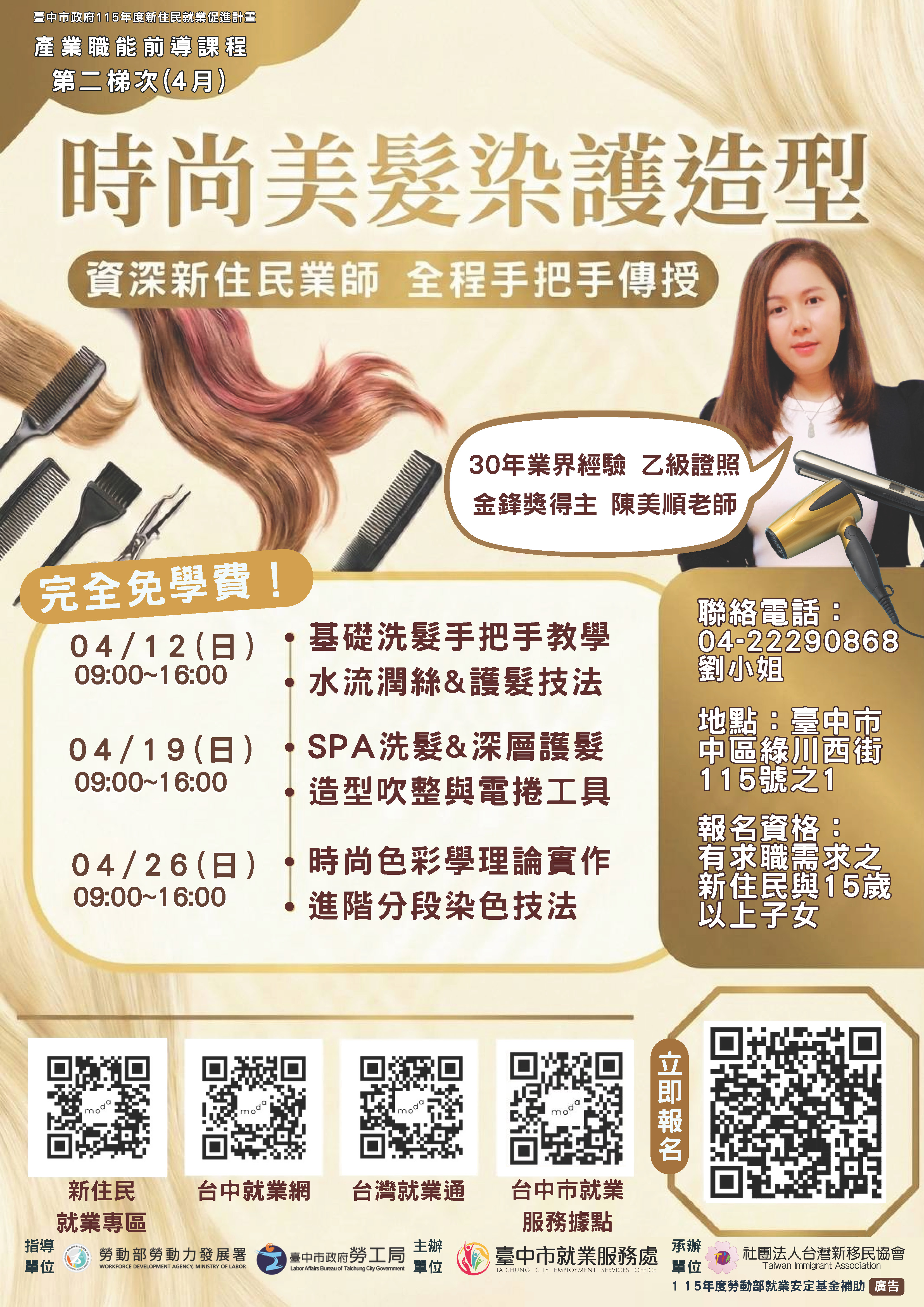 • 報名方式:請上「臺中市政府就業服務一鍵Catch報名網」報名或填寫報名表掃描或拍照寄至電子信箱valenxx@taichung.gov.tw。
