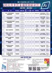 臺中市政府勞工局「115年短期職業訓練暨技能認證訓練」